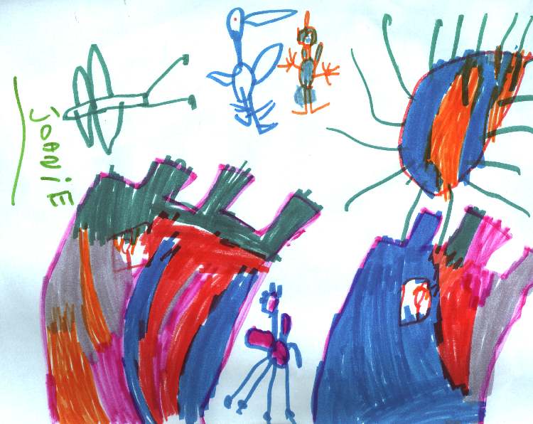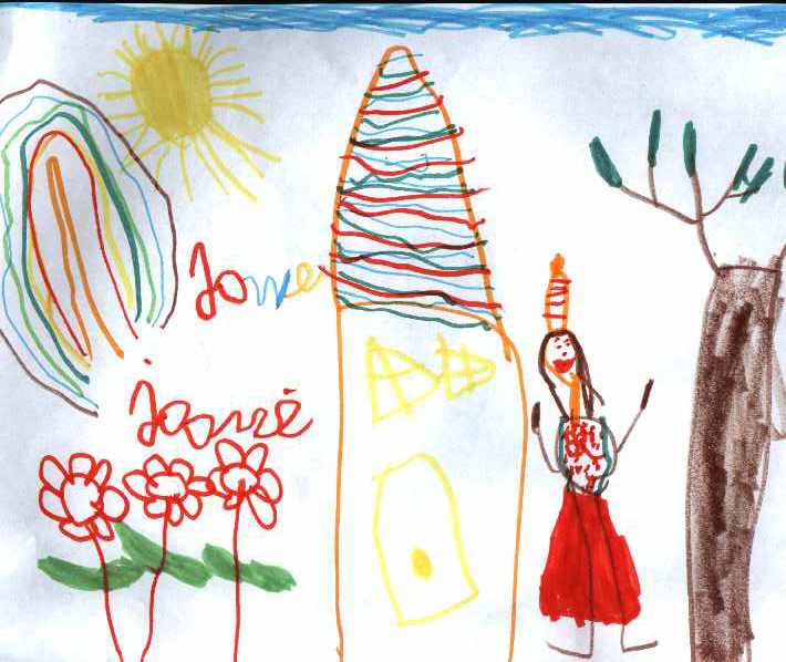 Le dessin qui a des fleurs qui grimpent à l'arc en ciel. Joanie |