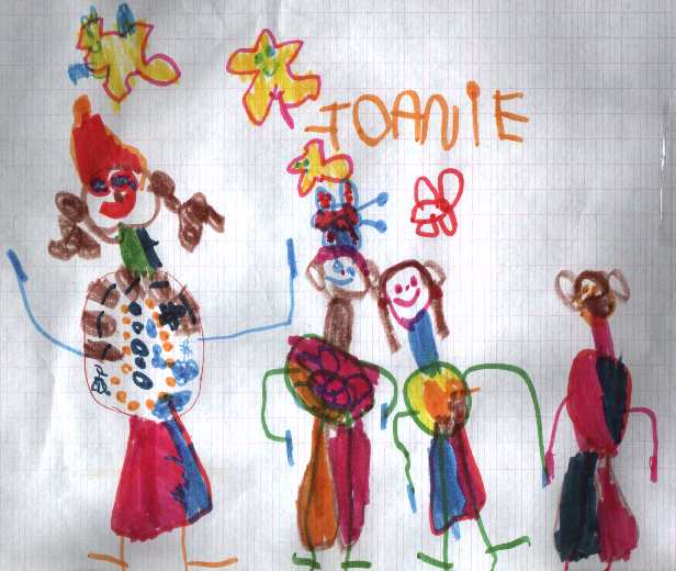 C'est ma famille : La famille rassemblée. maman, Rémy, moi, et papa. Mais en vrai papa est plus grand. Joanie. |